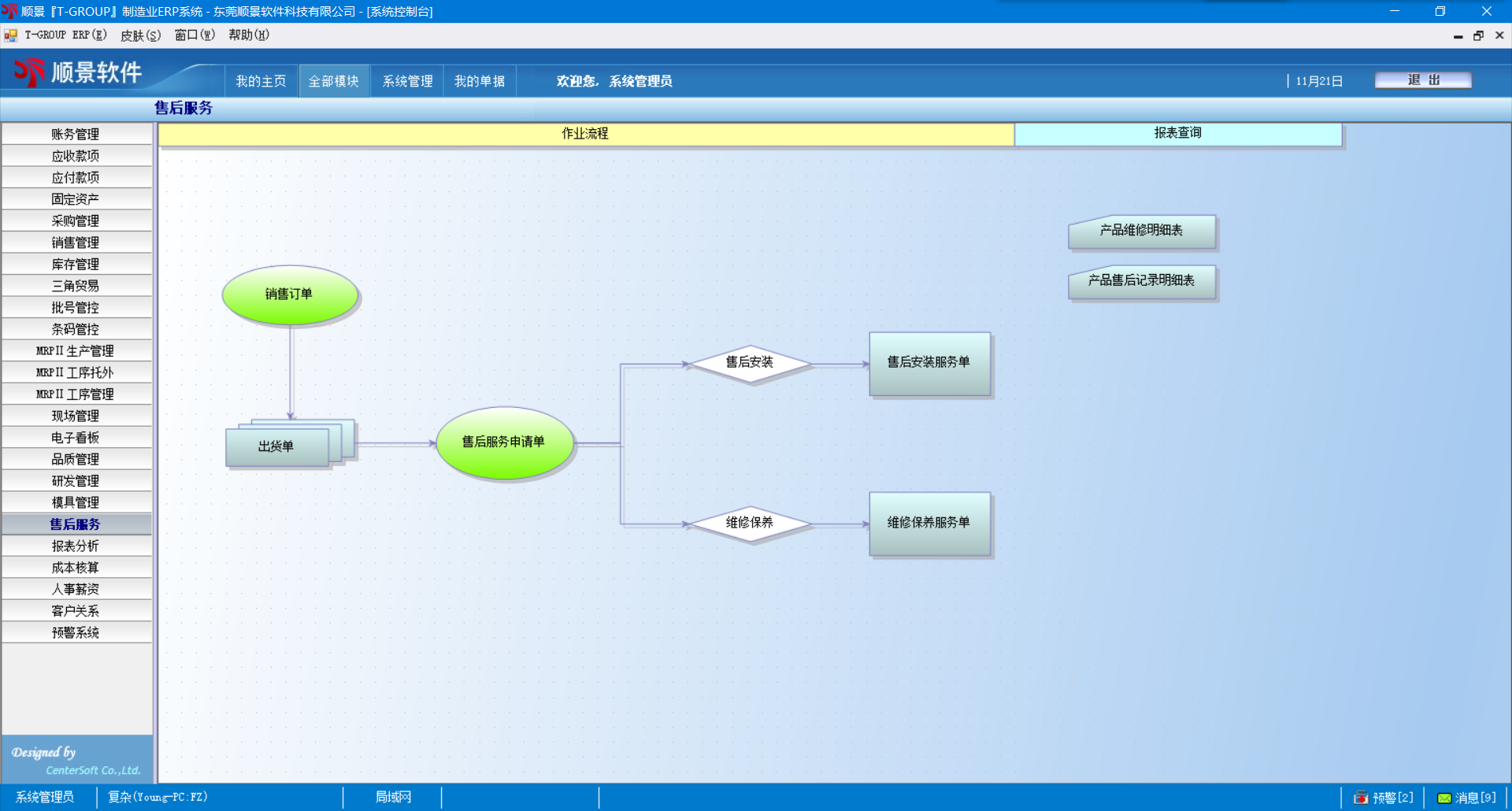1. 对于已经出货的产品可以直接从出货单转单到售后服务;